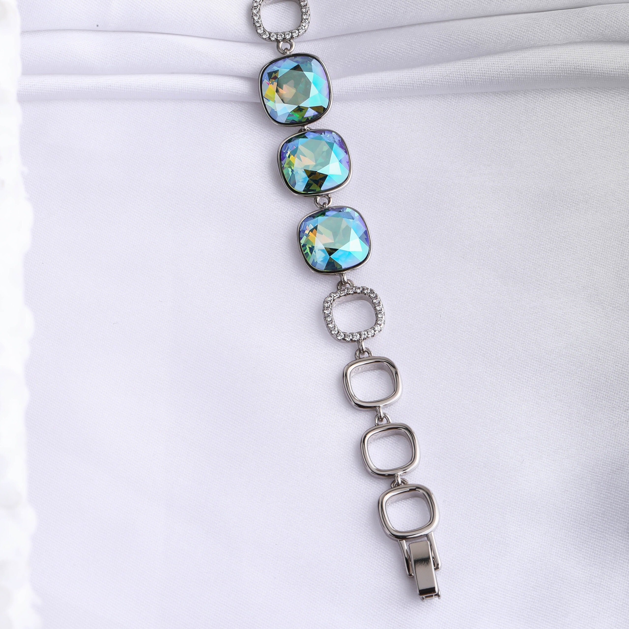 Our best-selling blue stone bracelet featuring striking iridescent square stones and a bold modern link design. A premium imitation jewellery piece designed to stand out.