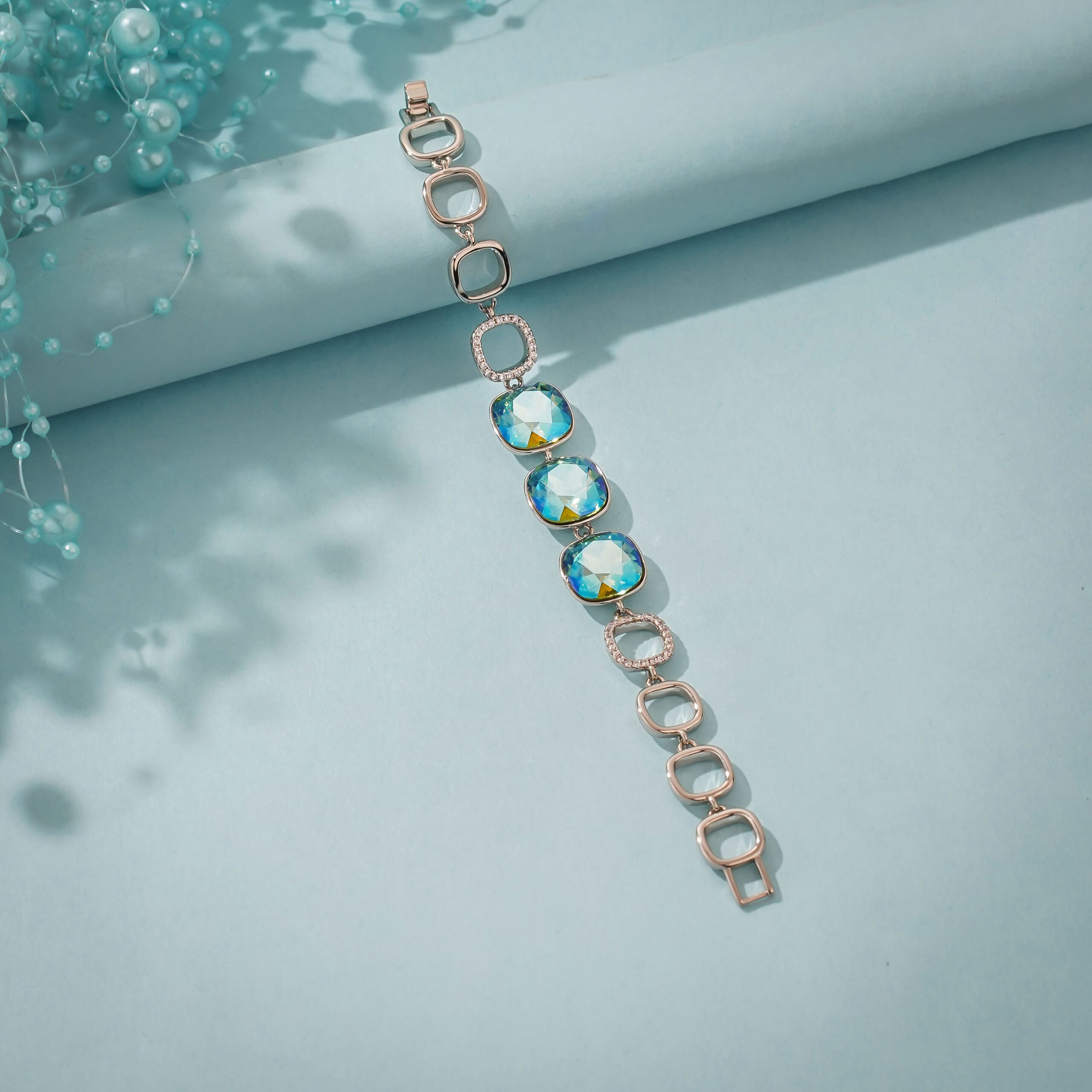 Elevate your style with this premium rose gold bracelet featuring a stunning crystal stone centerpiece. Designed with elegance and modern charm, this imitation jewellery piece is perfect for special occasions and gifting.