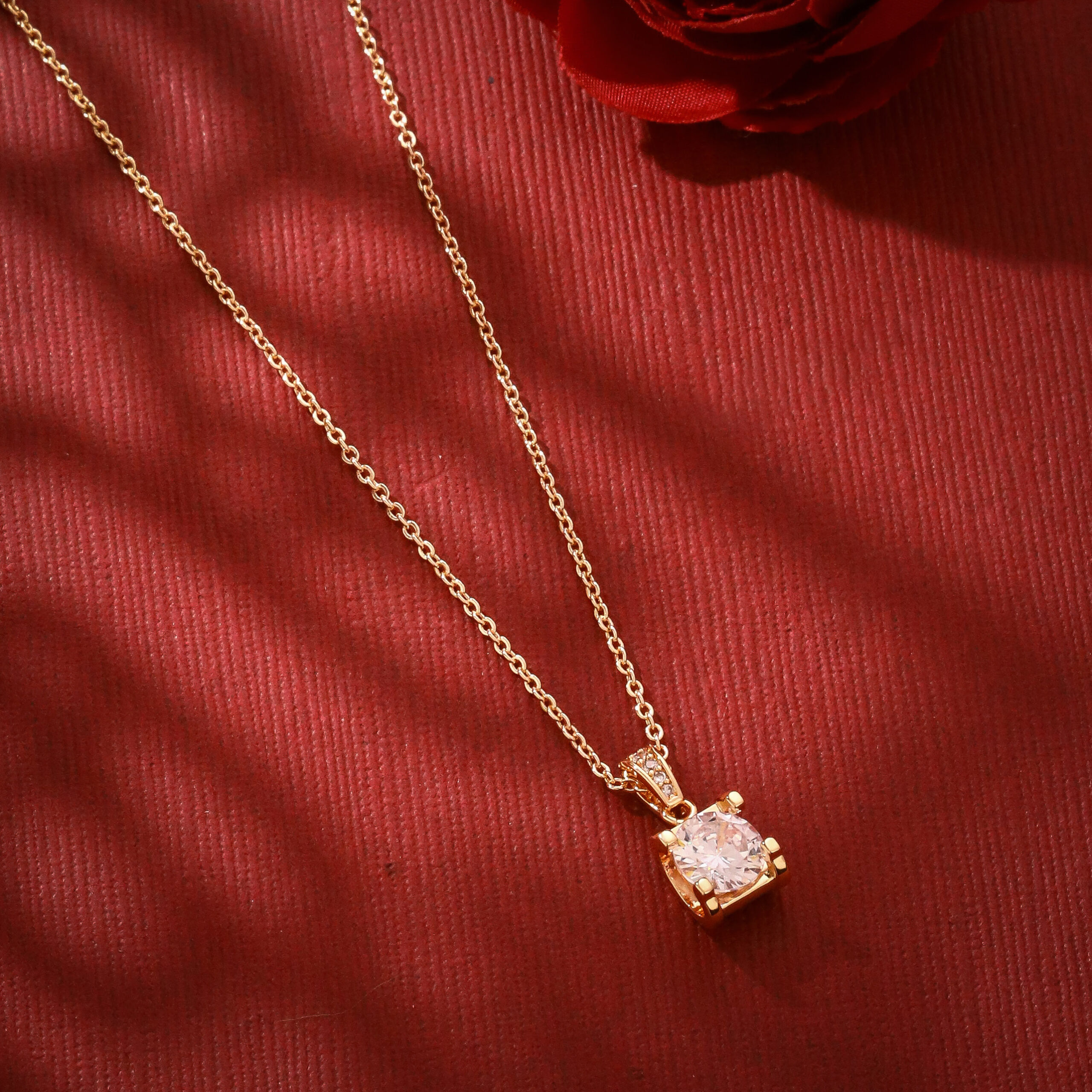 Crafted with a polished imitation finish, the pendant offers a premium look while maintaining lightweight comfort. The simple chain complements the square crystal, creating a minimal yet elegant design suitable for everyday and special styling.